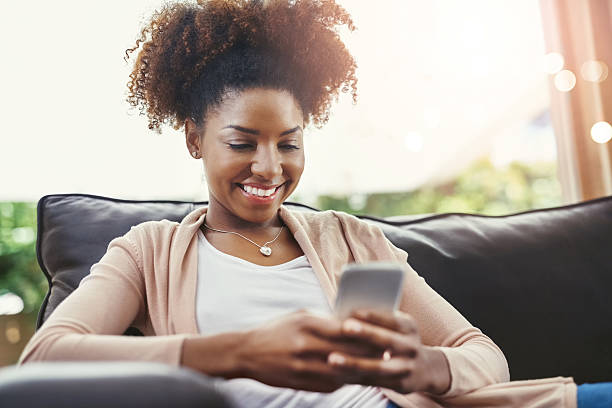 Shot of an attractive young woman using her cellphpone while chilling at home on the sofa